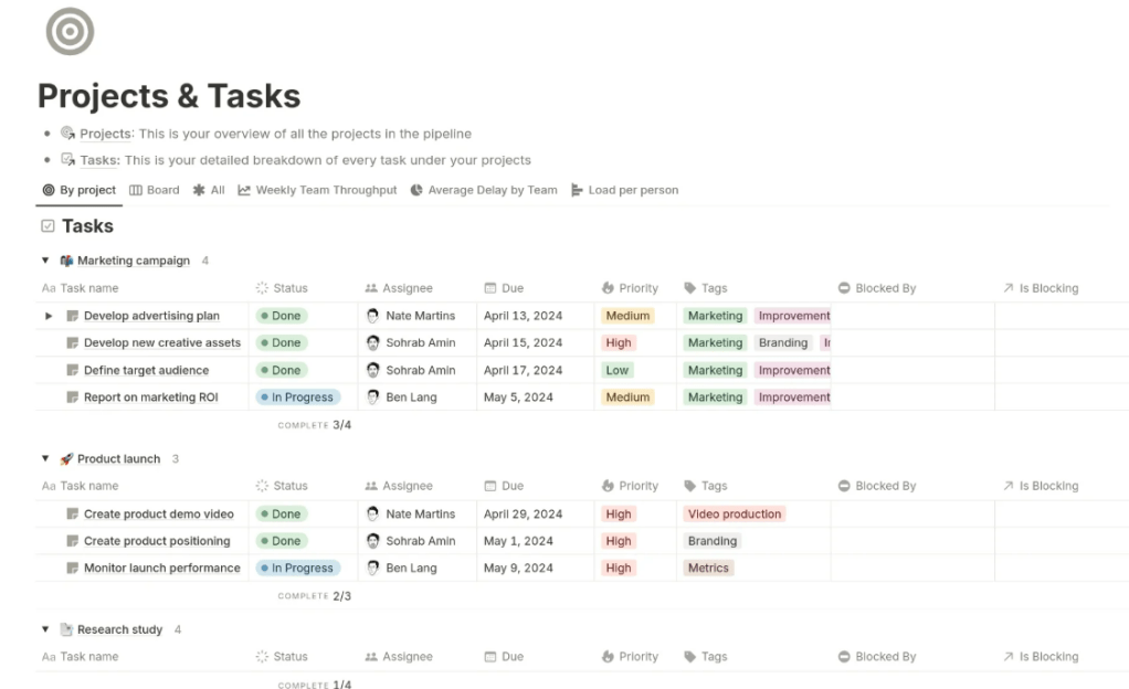 Notion es más que una herramienta de gestión de proyectos: es un espacio de trabajo modular. Puedes crear bases de datos, wikis, tareas, dashboards y más. Su poder está en la personalización.